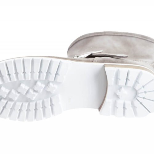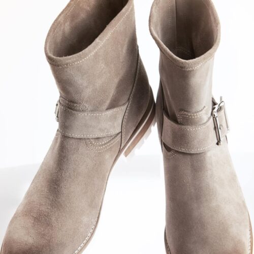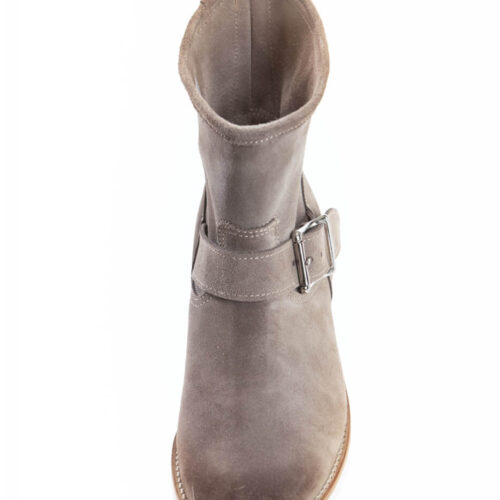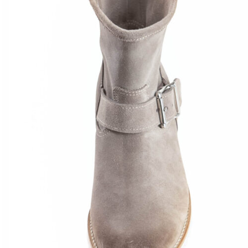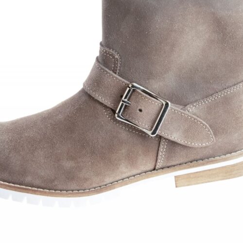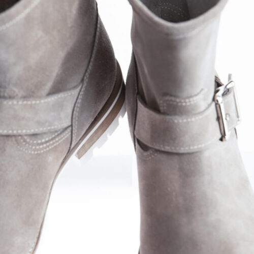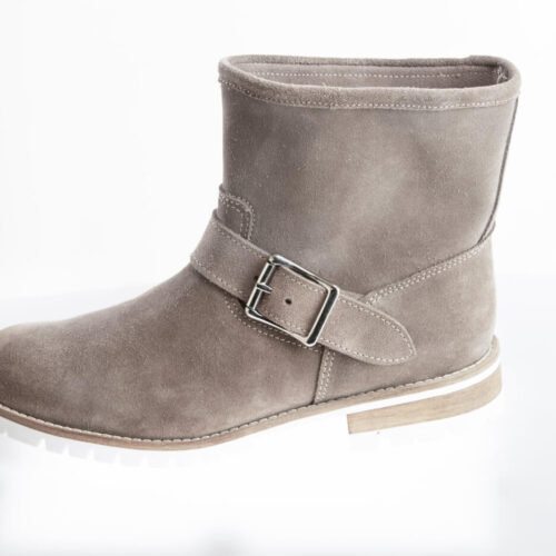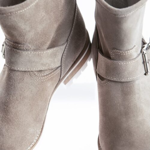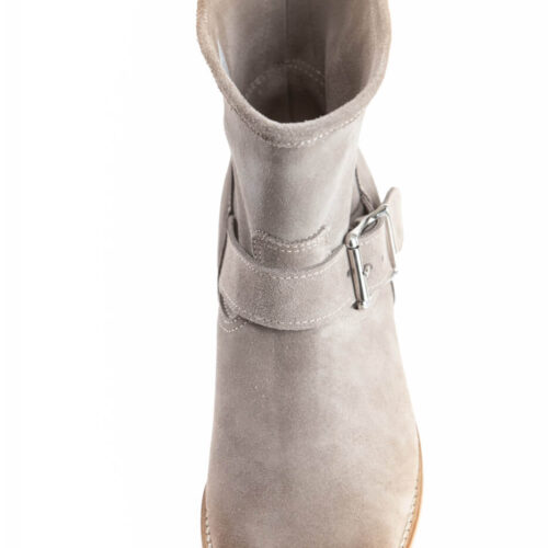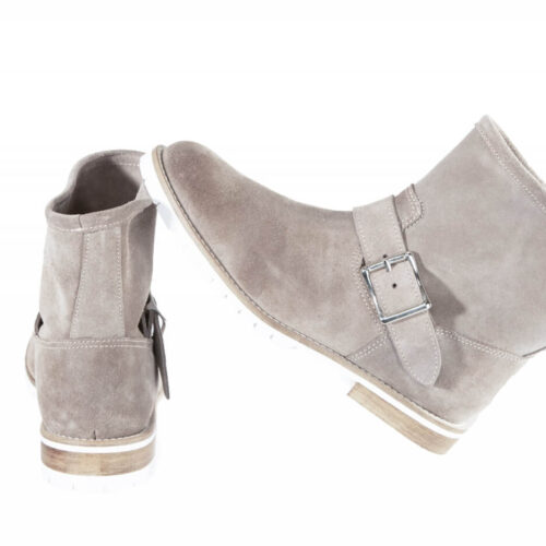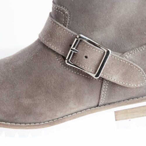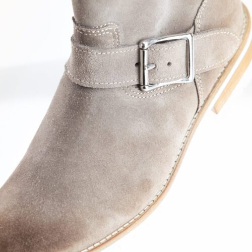 Esta bota esta fabricada artesanalmente con piel gamuza en color gris, con suela de taco resistente y con gran agarre, que le dan un aire moderno. Son ideales tanto para ciudad como para campo, fabricada con materiales de primerísima calidad y acabados únicos. Modelo de bota único con cosidos artesanales que la hacen una bota resistente y perdurable en el tiempo. No hay ninguna bota igual en el mercado ni se fabrican con la misma calidad.
