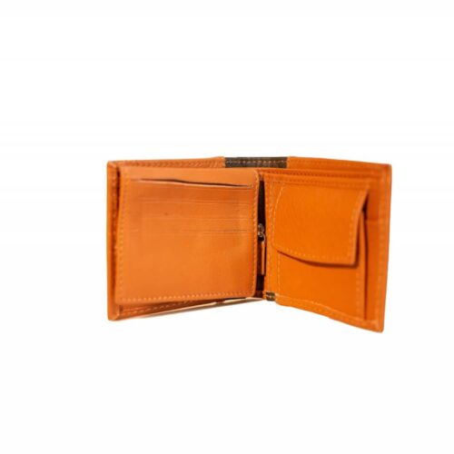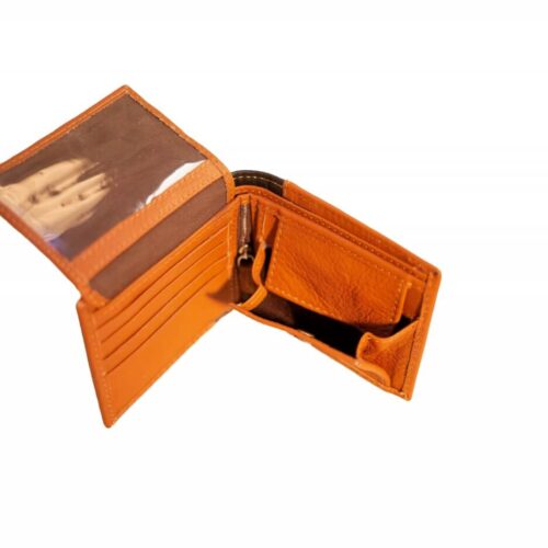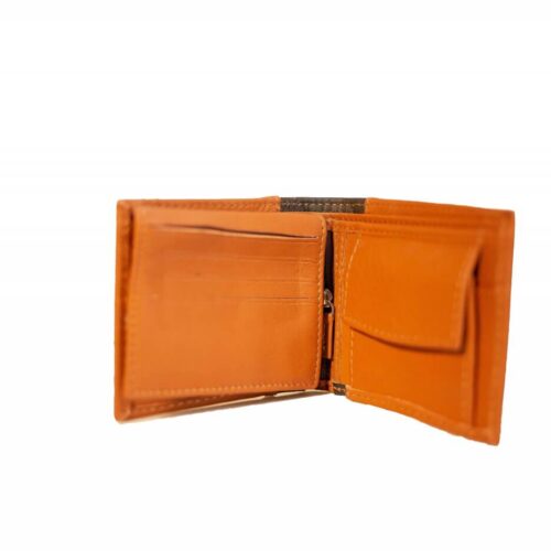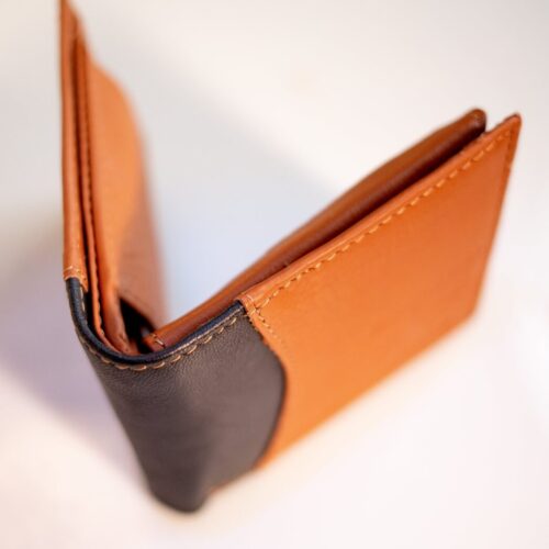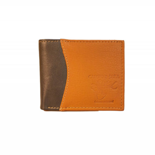 Cartera bicolor marrón -negro fabricada a mano con piel de primera calidad, con monedero interno, billetera y tarjetero.