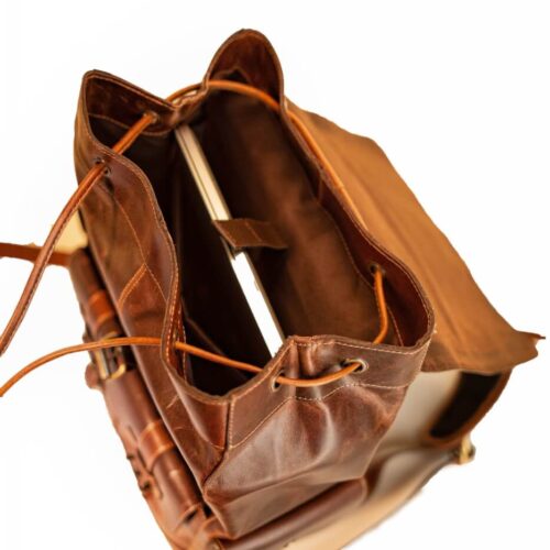 Mochila de dos asas para colgar en la espalda, una preciosa mochila fabricada en piel de bufalo de forma artesanal, perfecta para transportar desde material escolar, de trabajo ,con espacio para ordenador portátil, o para usarla en senderismo, Caza ,Pesca etc, hecha con todo nuestro mimo y cariño con costuras super resistentes y a la vez atractivas.
