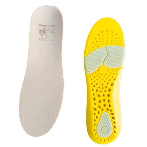 Campo y jara no dejara de sorprender a sus clientes en este caso fabricando una plantilla adaptable a cualquier tipo de bota o zapato, esta fabricada en material PU (poliuretano) de gran resistencia, con un acolchado en la parte del talon de mas de 10 mm. siendo reforzado con una ampolla de gel, al igual que en la planta, esto hace de esta plantilla que tengamos una agradable pisada con sensación de estar levitando, será un gran alivio para nuestras articulaciones , empezando por tobillos y alcanzando la parte inferior de nuestra columna vertebral, evitanto el golpe de la pisada.