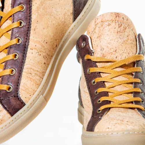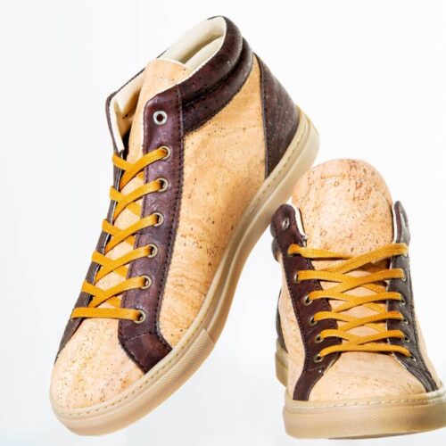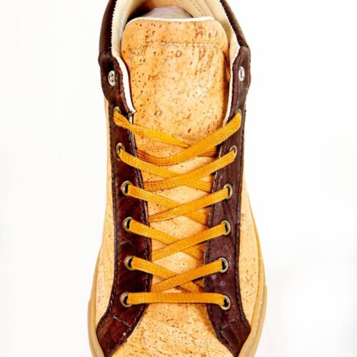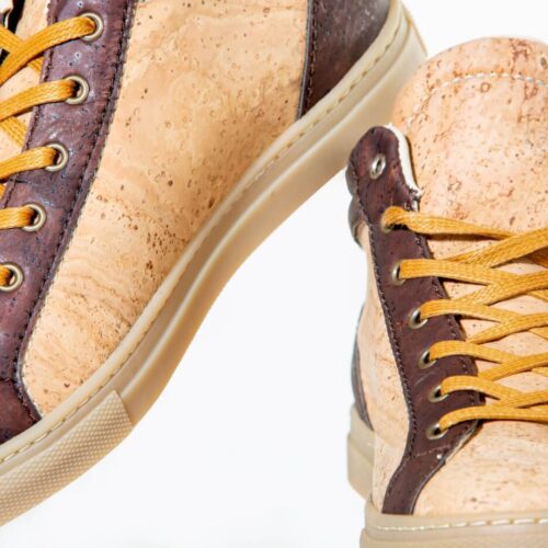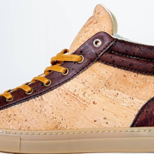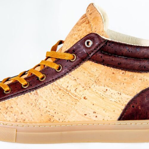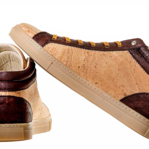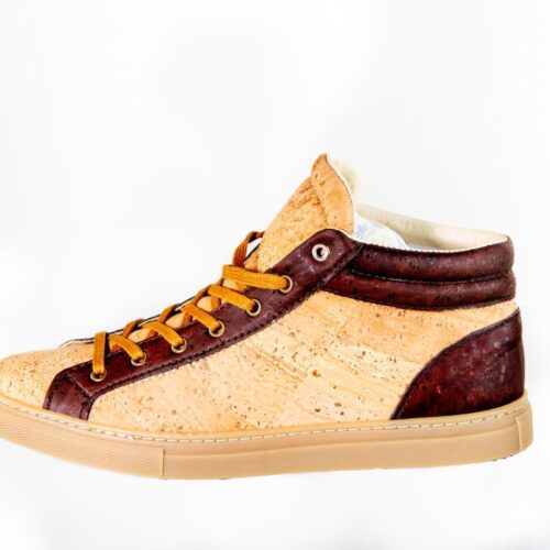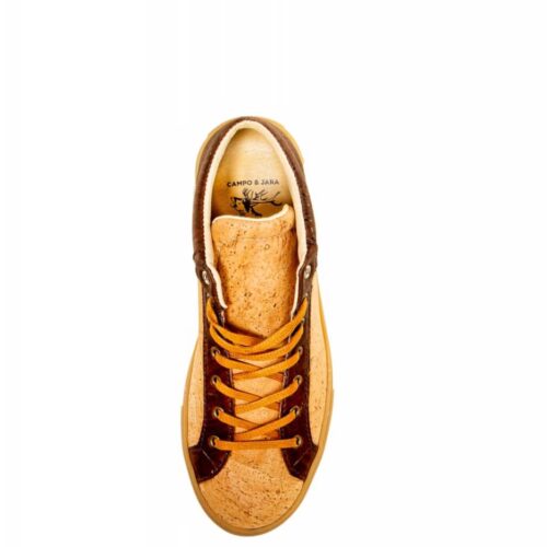 Este modelo esta fabricado en piel con acabado en corcho natural de 1,5 mm. de espesor forrado con piel de vacuno, plantilla acolchada, suela en caucho 100%