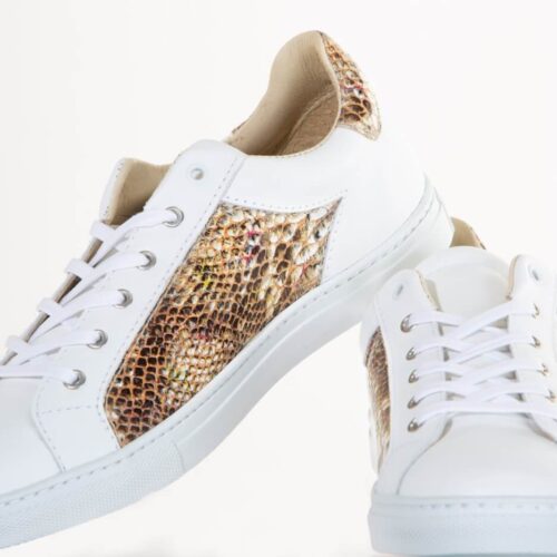 Modelo Cobra, fabricada con una selección de pieles flor de vacuno con motivos imitación a piel de cobra, todo cosido pieza a pieza, con delicado esmero, plantilla interior acolchada que dan a este calzado una elevada sensación de confort y comodidad muy agradable.